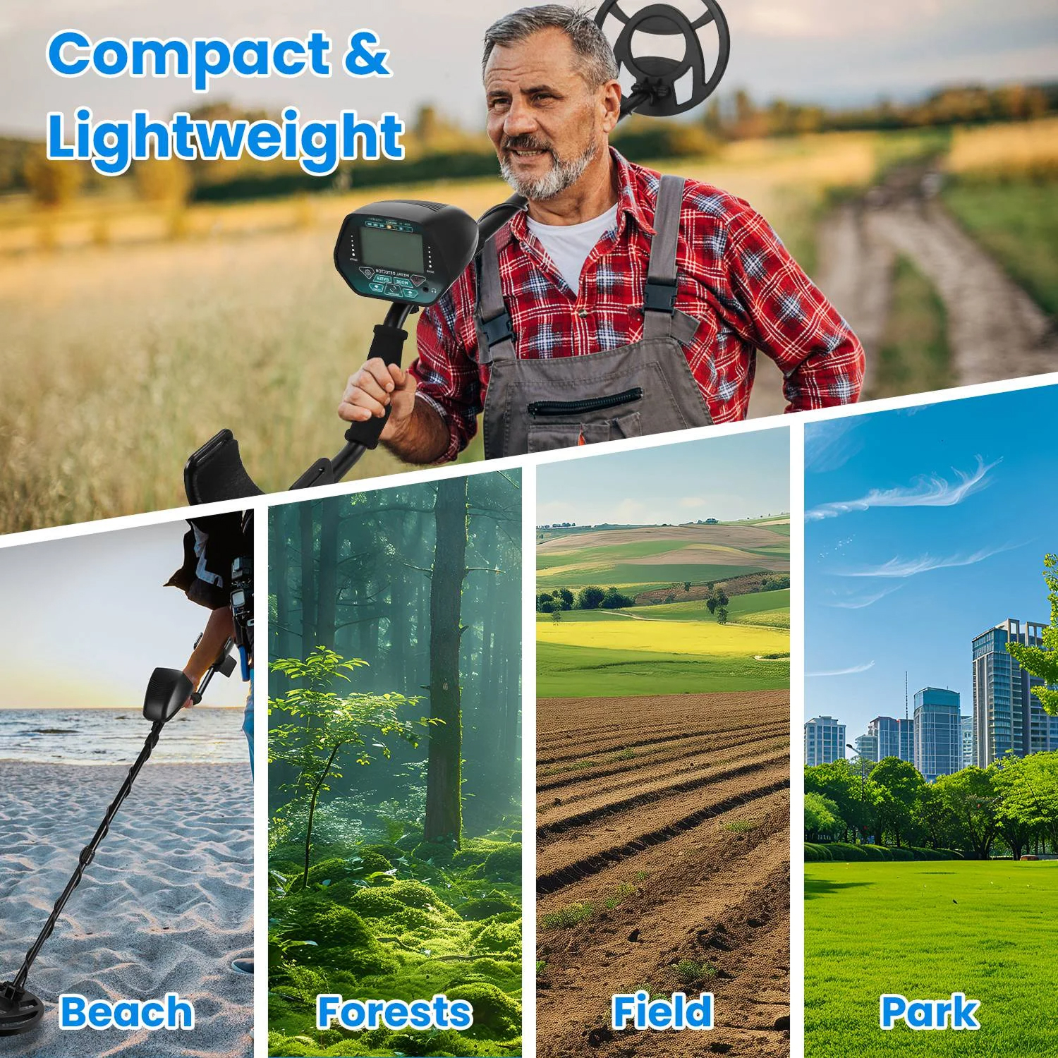 The FindScani distinguishes between five metal types: gold, silver, zinc, lead, and iron. The LCD display shows which metal category has been detected, eliminating unwanted targets efficiently.