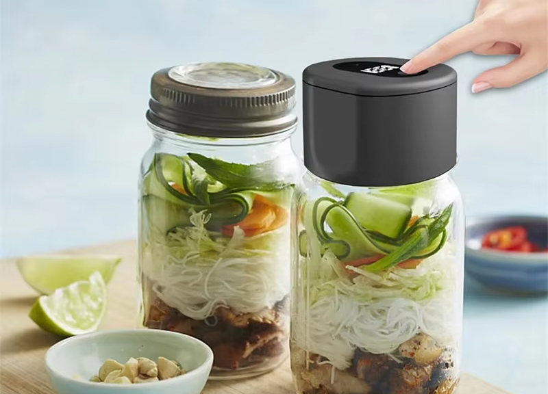 The LockNJar extends food freshness up to 5 times longer than traditional storage methods by creating a powerful vacuum seal that prevents oxidation, bacterial growth, and moisture loss in your mason jars.