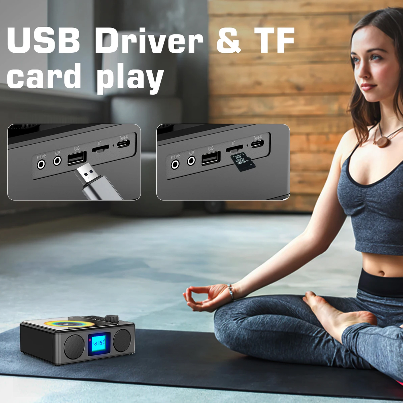 The MeloZex 2.0 plays standard CDs, CD-R, MP3, and WMA formats. It also supports USB drives and TF cards with digital music files, plus FM radio and Bluetooth streaming for maximum versatility.