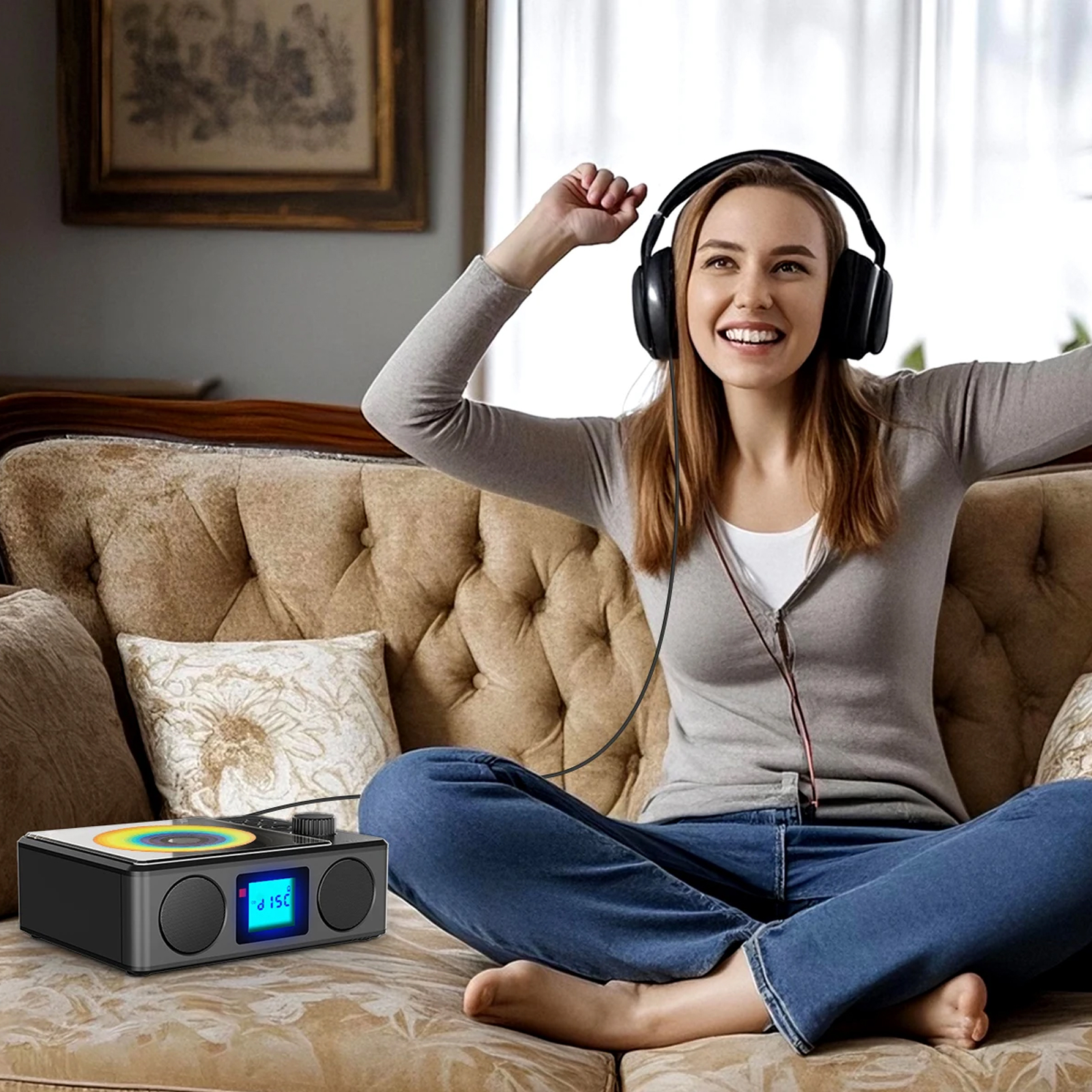 The included remote control operates effectively up to 16 feet away. This allows convenient control from across the room, letting you adjust settings, change tracks, and manage playback from your favorite spot.