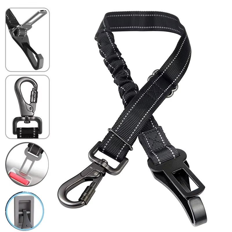 The PawiBelly Dog Seat Belt ensures safety with its 900-pound strength carabiner clip and shock-absorbing elastic buffer, which minimizes sudden jerks and keeps your dog securely in place.