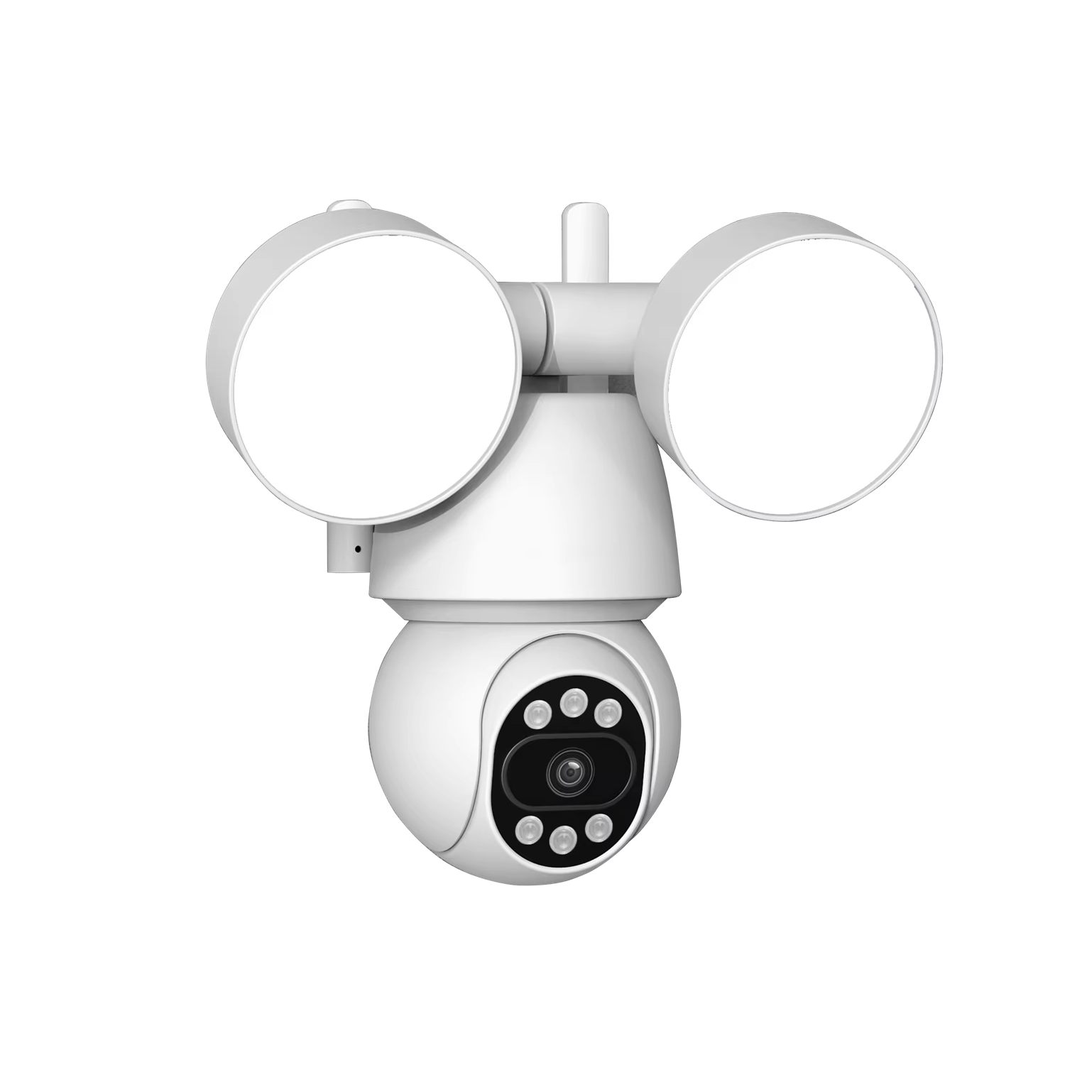 The SomikCam Floodlight Camera features full-color night vision with 54 dot matrix lights and 6 infrared lights, ensuring clear visibility even in complete darkness.
